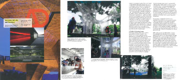The issue, titled Pavilions, Pop Ups and Parasols, explores the thematics of this architecture. "Around the world, a new architectural form is emerging. In public places a progressive architecture is being commissioned to promote open-ended, undetermined, lightly programmed or un-programmed interactions between people. This new phenomenon of architectural form – Pavilions, Pop-Ups and Parasols – is presaged by rapidly changing social relationships flowing from social media such as Facebook, Twitter and Instagram. The nexus between real and virtual meeting is effectively being reinvented by innovative and creative architectural practices."